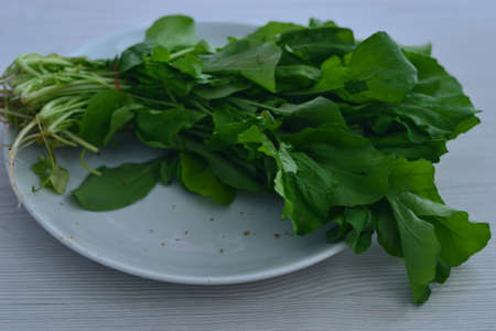 Watercress (Nasturtium officinale). Vegetable for salad. Detox diet. Vegetable whose common name is watercress. Edible plant that can be found in wet areas like rivers and streams.