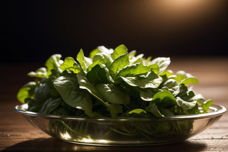 AI Generated. Fresh Arugula Leaves in Double Exposure Silhouette A Peppery Green Embrace of Fresh Salads