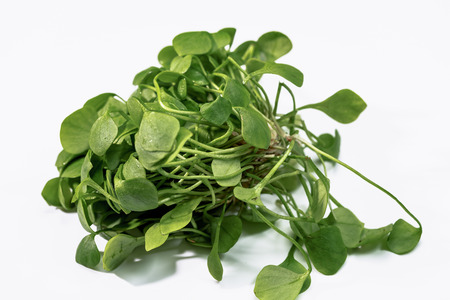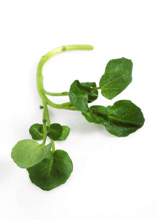 Watercress Salad, nasturtium officinale, Leaves against White Background