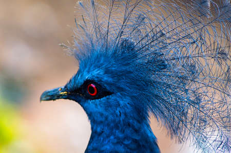 Victoria crowned pigeon, nice view of the blue turquoise bird, with the interesting feather headdress and the red eyes