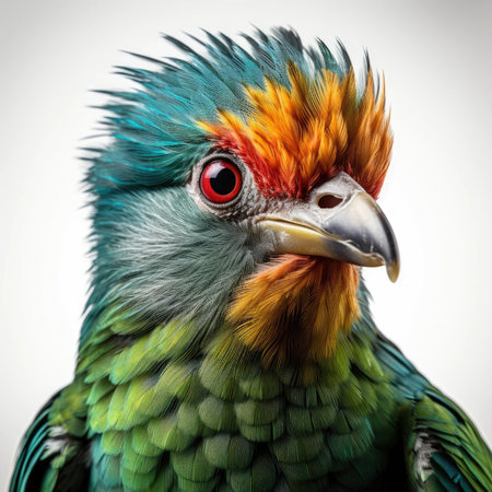 Bright multi-colored bird. Unusual birds with multi-colored rainbow feathers. Paradise tropical birds.