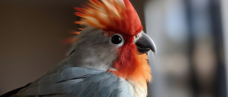 Portrait of a red-crested parrot with orange feathers