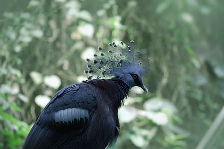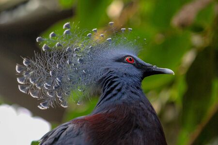 The Victoria crowned pigeon (Goura victoria), portrait of a big blue pigeon with a tuft on its head.