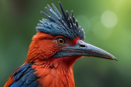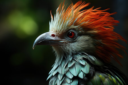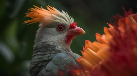 Depicting a close up of a bird with red hair, high quality, high resolution