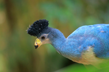 Closeup of a Great blue turaco, Corythaeola cristata, bird perching