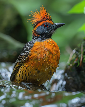 Generative AI : Beautiful BirdCrested Kingfisher Megaceryle lugubris rest on a branch in nature