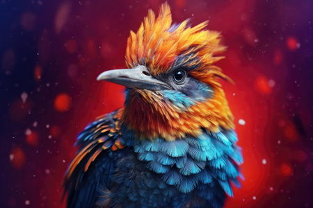 Abstract animal little Bird portrait with multi colored colorful on wings and feathers paint, Vibrant bright gradients tone, with Generative AI.