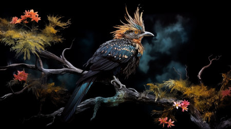 A Bird of Paradise Perched on a Tree Branch in the Highland Forest AI Generative