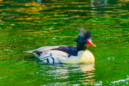 Scaly sided Merganser Chinese Merganser Duck Male Mergus squamatus Swimming Refletion Washiington