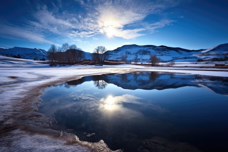 reflection of moonlight on a frozen landscape, created with generative ai