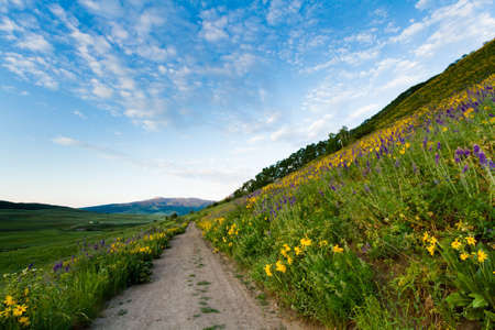 Wildflowers growing along a mountain road in Crested Butte Colorado