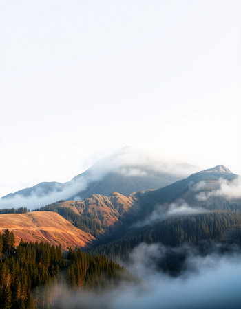 Mountain landscape with fog in the morning. Carpathian, Ukraine
