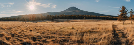 A photo of a breathtaking landscape dominated by a vast meadow