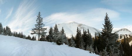 Winter Petros Mountain (Ukraine, Carpathian Mt's) panorama view. With path under.
