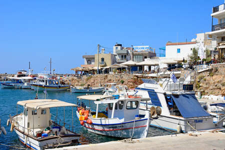 SITIA, CRETE, GREECE - JUNE 11, 2017: The pictursque port of Sitia, Crete, Greece. Sitia is a traditional town at the east Crete near the beach of palm trees, Vai