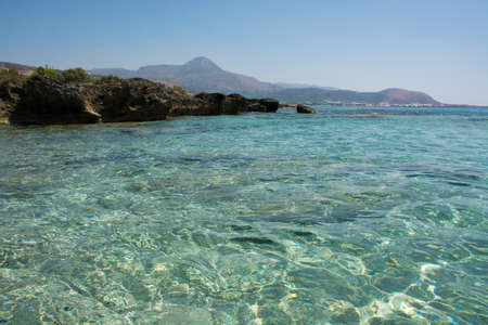 Falasarna beach, Crete Island landmark. Paradise beach with turquoise water and pink sand, Greece