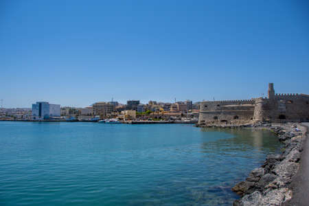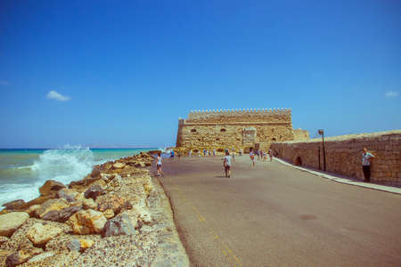 Crete Heraklion August 25: Venetian fortress Koules on August 25, 2015 in Heraklion. City is with 175.000 inhabitants capital on Crete.