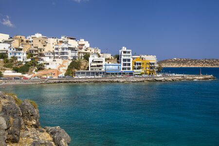 CRETE, GREECE - JULY 11, 2016: The embankment of a small elite tourist town - Elounda, municipality of Agios Nikolaos.