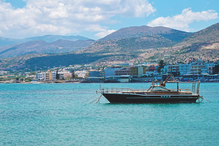 AGIOS NIKOLAOS, CRETE, GREECE - MAY 6, 2015: Seaside resort town of Agios Nikolaos located on the north-east side of Crete, Greece.