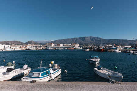 Agios Nikolaos, Greece, Crete - 05/23/2015: Ships and fishing boats in the harbor of Agios Nikolaos.