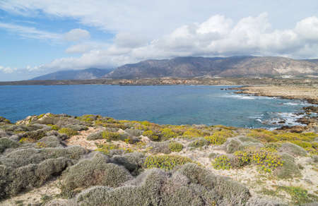 Beautiful nature views of the shore and the bay of Stalis and Sissi near Heraklion, Crete, Greece.