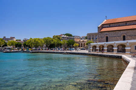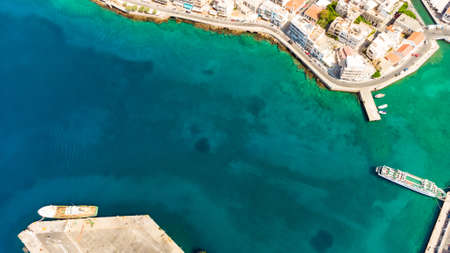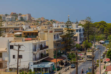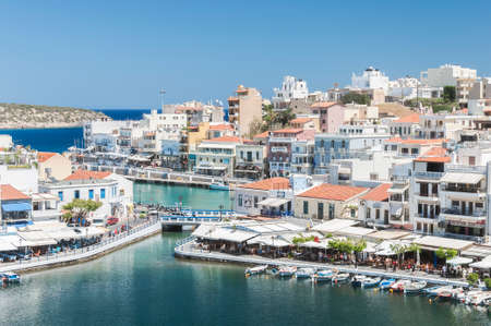 Agios Nikolaos, Crete, Greece - June 08, 2017: Agios Nikolaos town at summer afternoon. Agios Nikolaos is one of the most touristic cities on Crete island, Greece