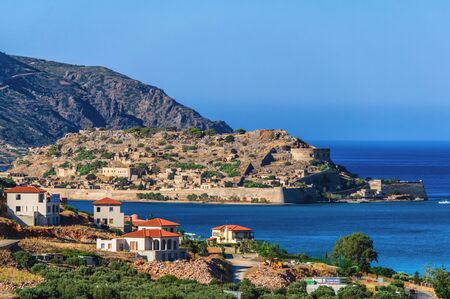 6.25.2013 - The view on Spinalonga island from Elounda hills, Crete island, Greece .