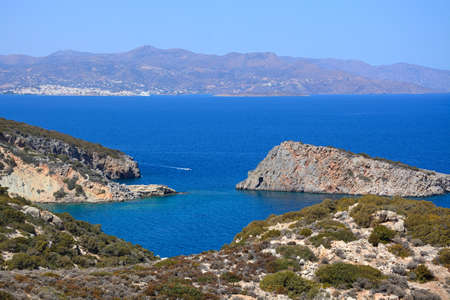 The view of the Spinalonga Island from the pebble beach, Crete, Greece