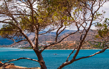 6.25.2013 - The view on Spinalonga island from Elounda hills, Crete island, Greece .