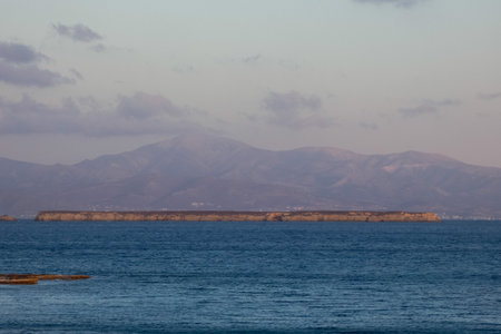 Beautiful landscape of Crete, sea and mountain. North shore of island.
