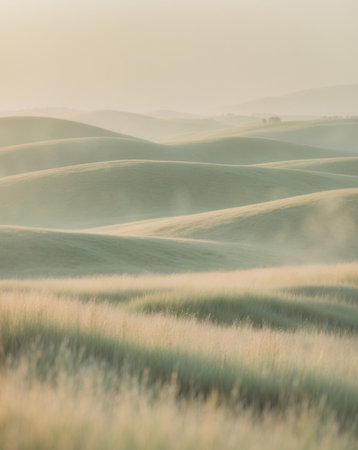 AI Generated. Gentle Rolling Meadows in Soft Focus Lighting