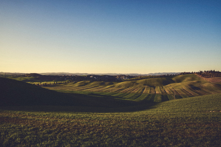 Landscape of the soft Siena hills in the warm light of the sunset