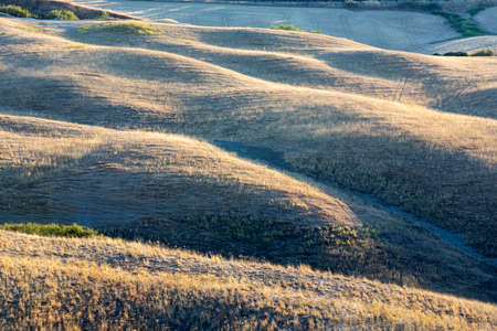 Rolling hills of different colors in soft light, Tuscany, Italy.