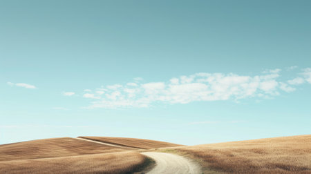 A landscape of slope hill with road or pathway and blue sky. The slope green mountain with tree with path lead to the top of hill. he road winds its way gracefully along the hills contours. AIG42.