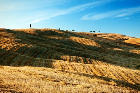 golden stubble evening at the Italian Tuscany