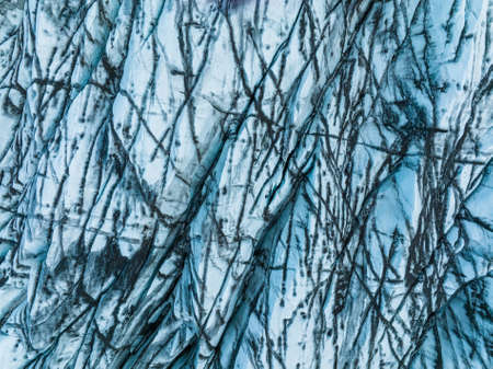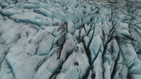 Svnafellsjkull Glacier in Iceland. Top view. Skaftafell National Park. Ice and ashes of the volcano texture landscape, beautiful nature ice background from Iceland