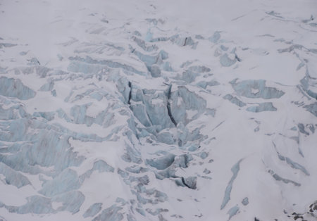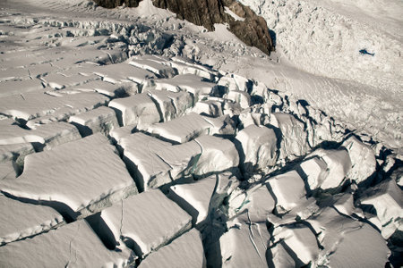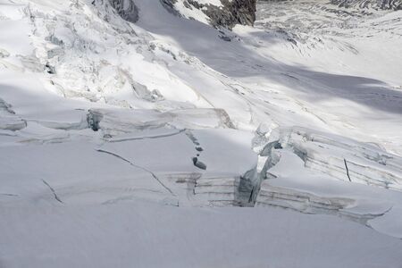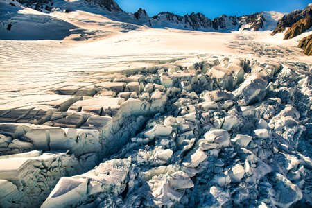 Glacier crevasses and seracs in a snow field in the Mont Blanc area.
