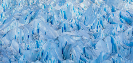 Icy formations of Perito Moreno Glacier at Canal de Tempanos in Parque Nacional Las Glaciares near El Calafate, Patagonia, Argentina