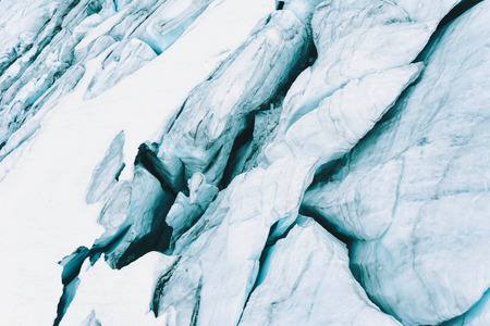 Detailed view of glacier structure with blue vivid ice, Iceland.