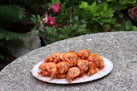 Cooked Atlantic shrimps. Close up. A traditional food of coastal cuisine
