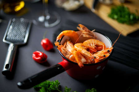 spicy shrimps. Cooked Shrimp. a lot of boiled peeled shrimp. Concept of healthy diet.