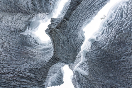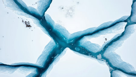 Stunning aerial glacier crevices contrast in blue and white