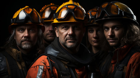 Portrait of a group of workers on a black background. Studio shot.