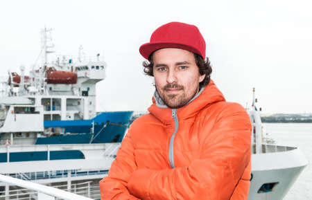Seaman AB or Bosun on deck of vessel or ship , wearing PPE