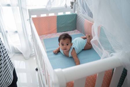 asian happy baby on the crib