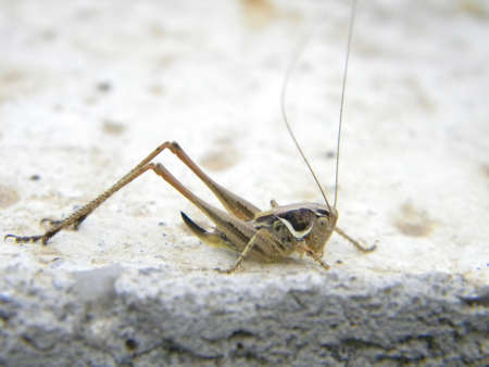 This macro image showcases a grasshopper on a rough surface, emphasizing its intricate features and surroundings, perfect for nature enthusiasts and educators.