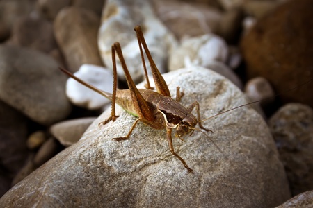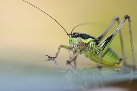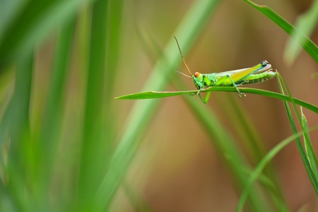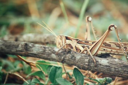 Close up of grasshopper in nature. Macro shot with shallow depth of field.