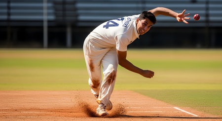 Cricket game fielder in action.