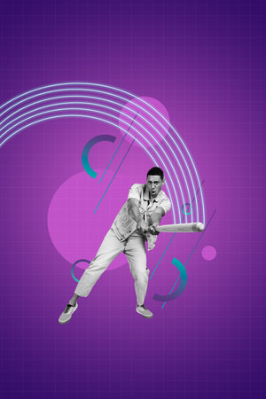 Template sketch image artwork collage of health fitness warmup motivation dynamic exercise training care young man play baseball hold bat