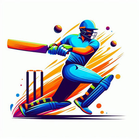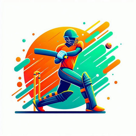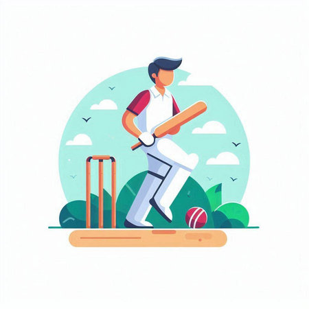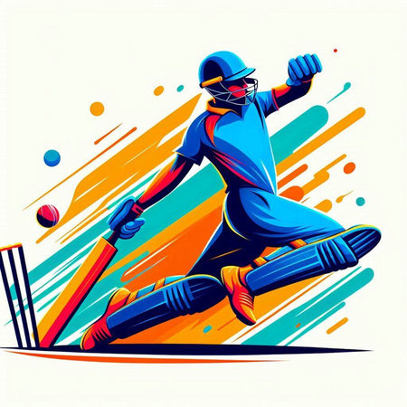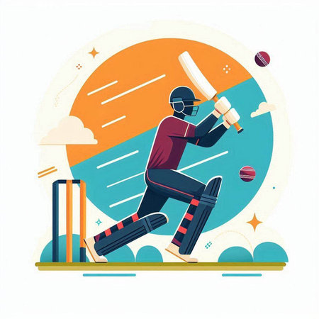 Cricket player in action with bat and ball vector illustration.